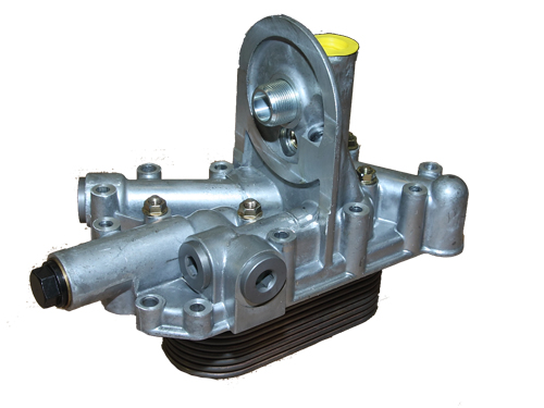 機(jī)油冷卻器的作用是冷卻潤(rùn)滑油,保持機(jī)油油溫在正常工作范圍之內(nèi)。在大功率的強(qiáng)化發(fā)動(dòng)機(jī)上,由于熱負(fù)荷大,必須配置機(jī)油冷卻器。發(fā)動(dòng)機(jī)工作時(shí),機(jī)油冷卻器的作用是降低機(jī)油溫度,保持潤(rùn)滑油一定的粘度,保證潤(rùn)滑。機(jī)油冷卻器布置在潤(rùn)滑系循環(huán)油路。